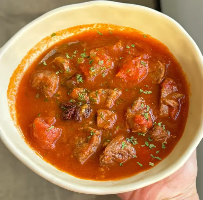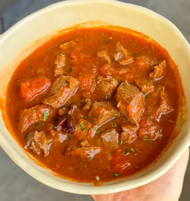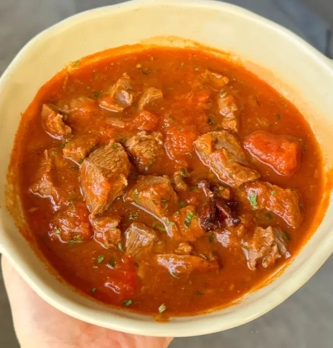 番茄牛腩汤,色泽红亮,香气浓郁。牛腩炖得软烂入味,番茄的酸甜味道完美融入了汤中,喝起来既鲜美又开胃。